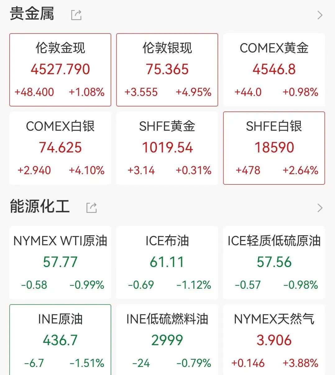 大宗商品方面,黄金、白银继续走高,截至发稿,现货黄金站上4527美元关口,现货白银站上75美元,创1980年以来最高溢价水平。沪铜主力合约夜盘站上十万关口,为历史首次,当前涨幅近2%。现货钯金日内暴涨10.00%,现报1865.13美元/盎司。