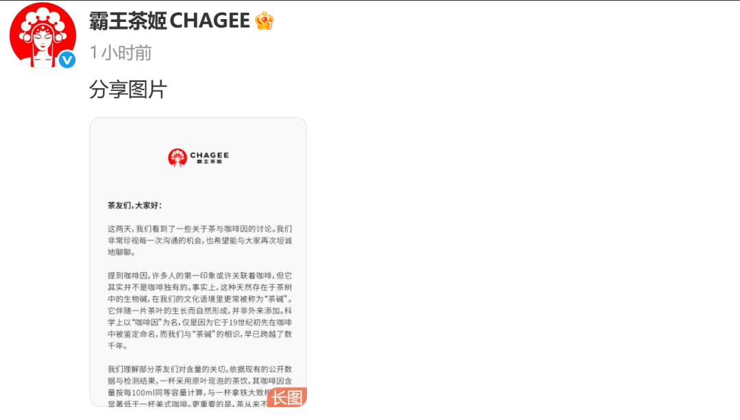 26日晚间,霸王茶姬在官方微博发布长文回应质疑。公司在文中称,理解部分茶友们对咖啡因含量的关切,“依据现有的公开数据与检测结果,一杯采用原叶现泡的茶饮,其咖啡因含量按每100ml同等容量计算,与一杯拿铁大致相当,并显著低于一杯美式咖啡。”