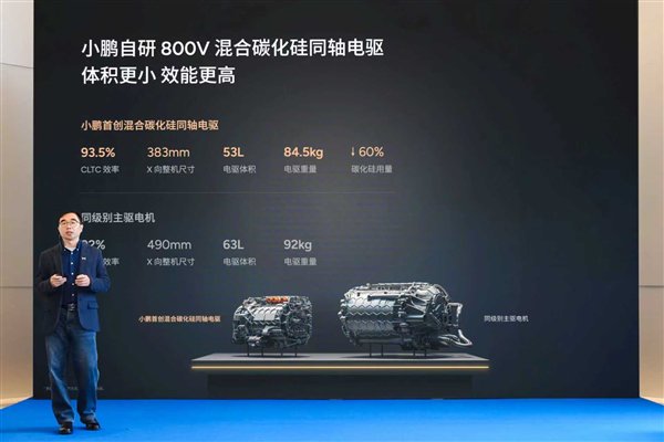 小鹏X9超级增程作为一款大七座MPV,因为要照顾车内驾乘人员的空间需求,对动力系统的体积、效率提出了更严苛要求,尤其是电机横向尺寸。