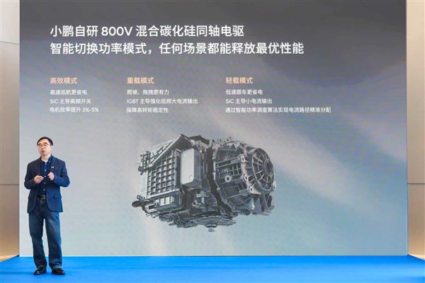 同时,小鹏自研800V混合碳化硅同轴电驱,体积更小,效能更高,CLTC效率93.5%。还能智能切换功率模式:高效模式、重载模式、轻载模式,无论是爬坡、拖载,还是低速跟车,在任何场景下都能释放最优性能,做到SOC 8%动力依旧不衰减。