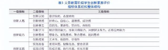 权重也算得仔细,用层次分析法,专家两两比较,得出创新人格最重,占一半多,其次是能力,实践相对轻一些。这也符合义务教育阶段的特点,小孩首先得有那股不服输的劲头和灵活的脑子,实践条件毕竟有限。